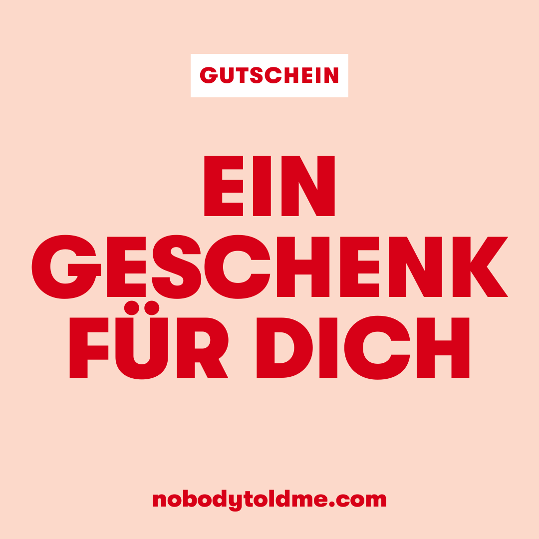 Mit diesem Gutschein von NOBODYTOLDME kannst du deiner Schwester, Freundin, Kollegin, Frau, Schwägerin, Chefin, Cousine, Tochter, Partnerin, Gefährtin, ... eine Freude machen.