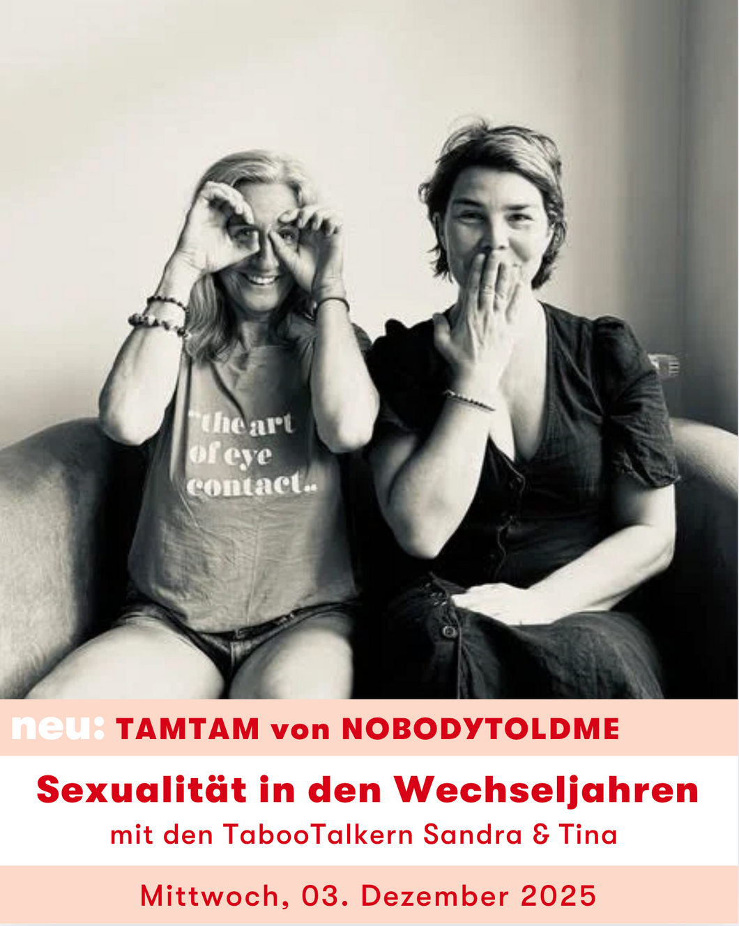 Sandra & Tina teilen Insights aus Workshops und ihrer aktuellen Umfrage zu "Sexualität und Wechseljahren“ bei der rund 200 Frauen über 40, ihre Tabus mit ihnen geteilt haben. Mit den TabooTalks kreieren sie einen sicheren und urteilsfreien Raum, indem neben hilfreichen Anregungen und Tipps mit alten Mythen aufgeräumt wird. Sie eröffnen ein paar Geheimnisse, teilen simple Hacks mit Euch und neben ermächtigenden Gesprächen gibt es ganz reale Tipps für den „Hausgebrauch“.